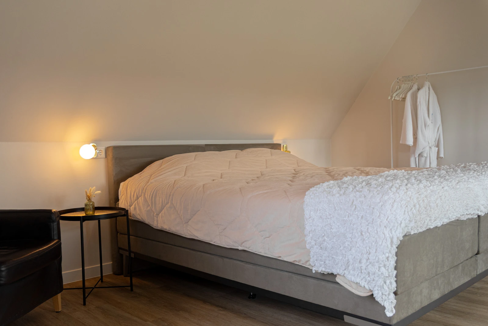Geniet van een luxe verblijf in deze ruime accommodatie van 45m² met privéjacuzzi. Met een comfortabele boxspring, volledig ingerichte keuken en gezellige woonkamer heb je alles voor een ontspannen verblijf. Ideaal voor twee personen die willen genieten van rust en comfort.